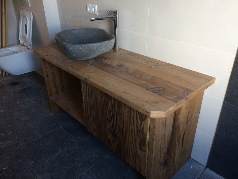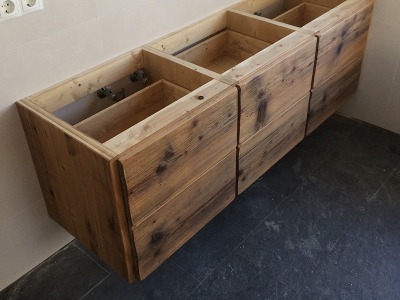 Die Arbeit mit Altholz hat einen ganz besonderen Charme. Durch die rustikale und doch moderne Optik hat auch das fertige Badezimmermöbel eine einzigartige Austrahlung. Doch Bilder sagen mehr als 1000 Worte. Hier sehen Sie das Möbelstück – von einzelnen Teilen bis zum fertigen Badmöbel.